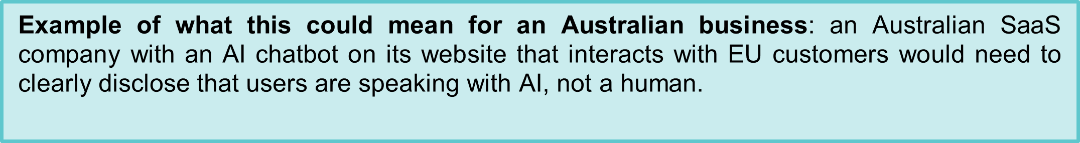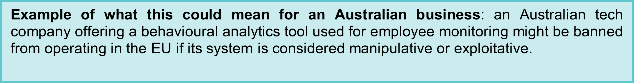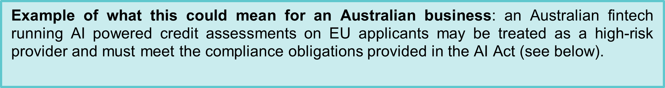 So the AI Act is not a distant piece of foreign legislation. Its extraterritorial scope means compliance obligations may arise if AI products or services are marketed to EU users, or if outputs are used within the EU. Australian organisations operating globally - whether in finance, technology, health, education, or professional services - should be mapping their exposure to the EU market and assessing whether their AI systems fall within the AI Act’s regulated categories discussed further below.